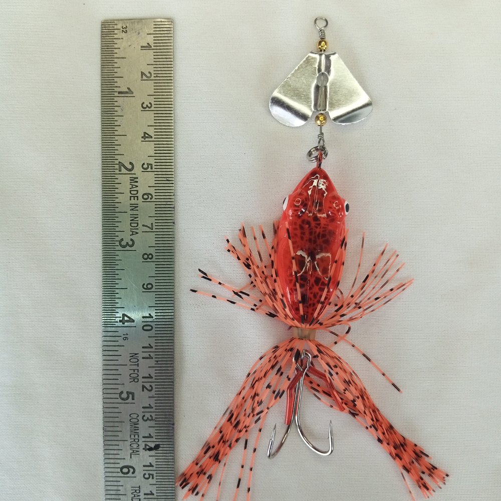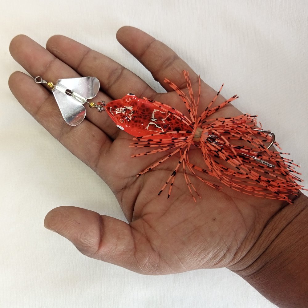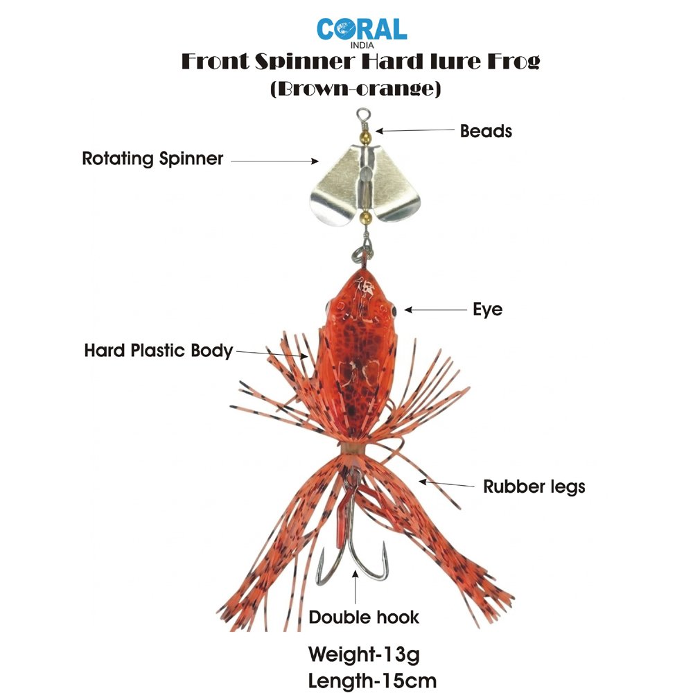 Upgrade your tackle box with the Coral India Front Spinner Hard Lure Frog. Specifically engineered for targeting Snakehead, Wallago, and other freshwater predators, this lure combines the splash of a spinner with the profile of a frog.