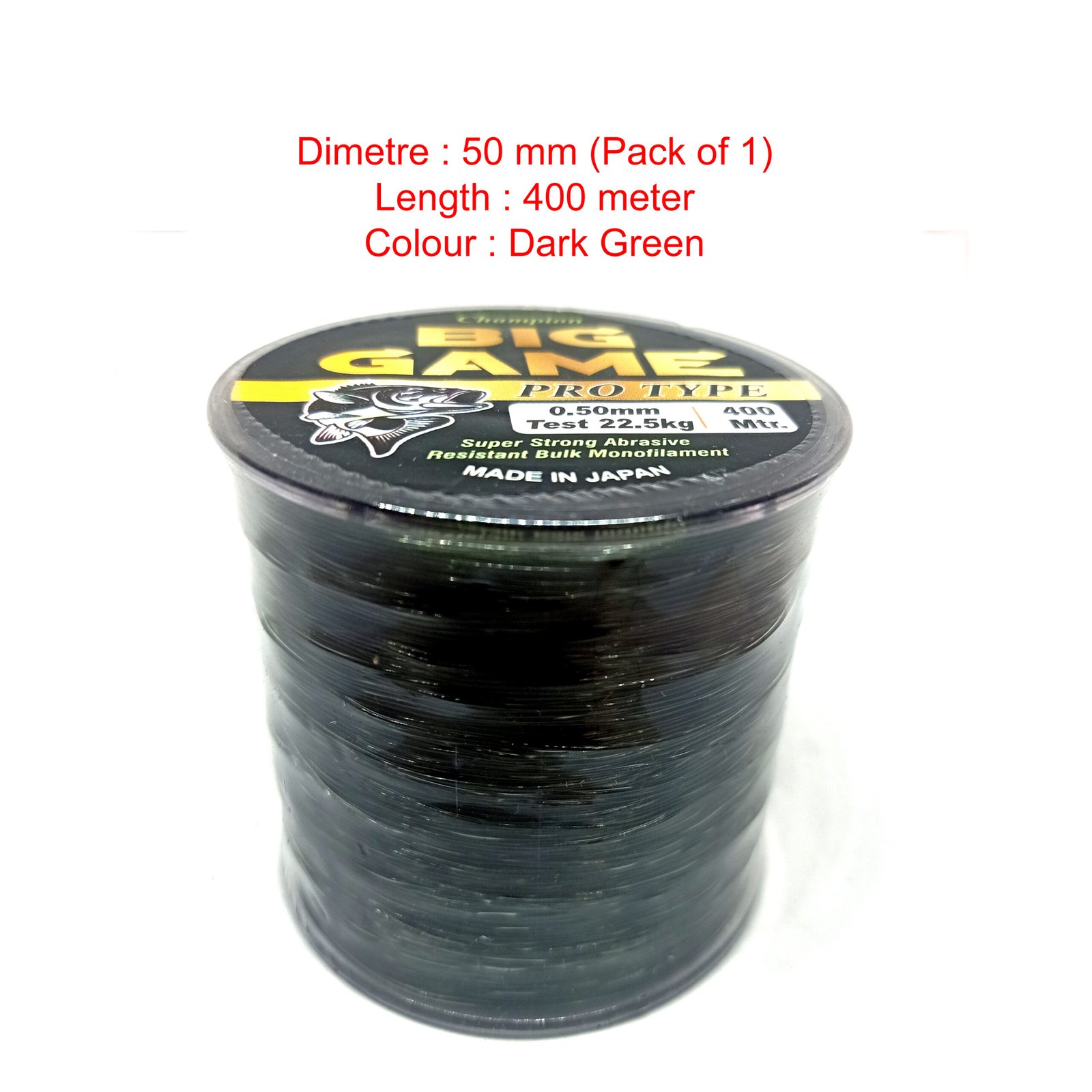 Big Game Fishing Line Dia. 0.50mm , Testing Strength 22.5kg, Length 400meter, color Dark Green (Pack of 1)
