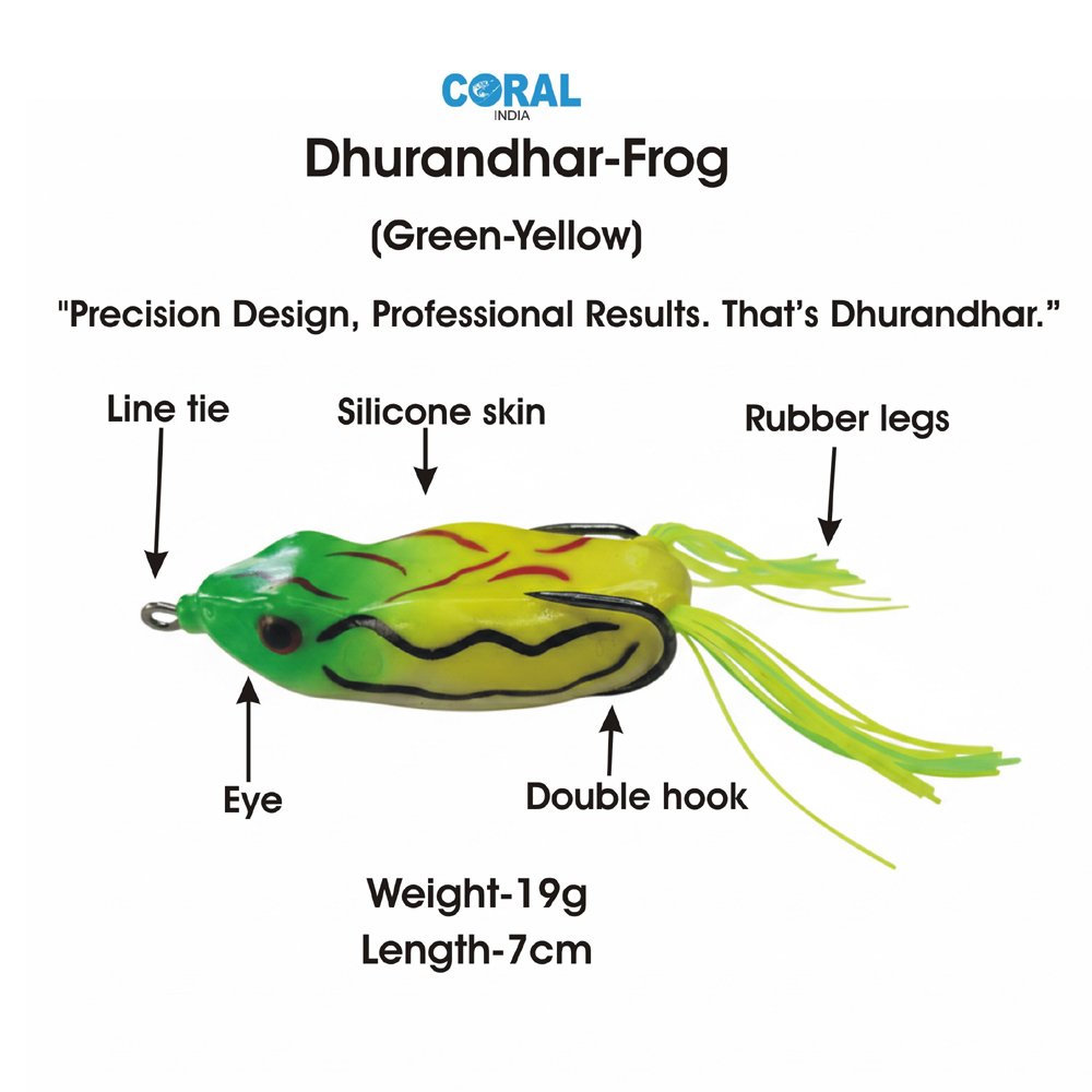 Elevate your angling game with the Coral India Dhurandhar Frog. Specifically engineered for professional results, this lure is a powerhouse for catching predatory fish like Snakehead (Murrel) and large Bass. Weighing in at 19g with a length of 7cm, it offers the perfect balance for long-distance casting and high stability on the water surface.