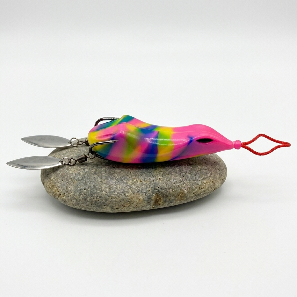 The 14cm elongated body and the “double spoon” tail mechanism create a unique splashing sound and visual trail on the water’s surface. Its soft-squeeze body ensures that when a fish strikes, the hooks are instantly exposed for a solid set. Whether you are a professional angler or a hobbyist, this multicolor ninja frog is built to deliver results in every cast.