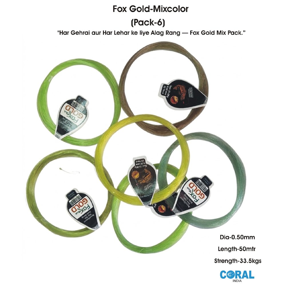 Elevate your angling game with the Coral India Fox Gold Mixcolor Pack. Designed for versatility and extreme durability, this premium monofilament fishing line is a must-have for every tackle box. The “Mixcolor” pack provides a variety of shades, ensuring you have the perfect line for “Every Depth and Every Wave.”