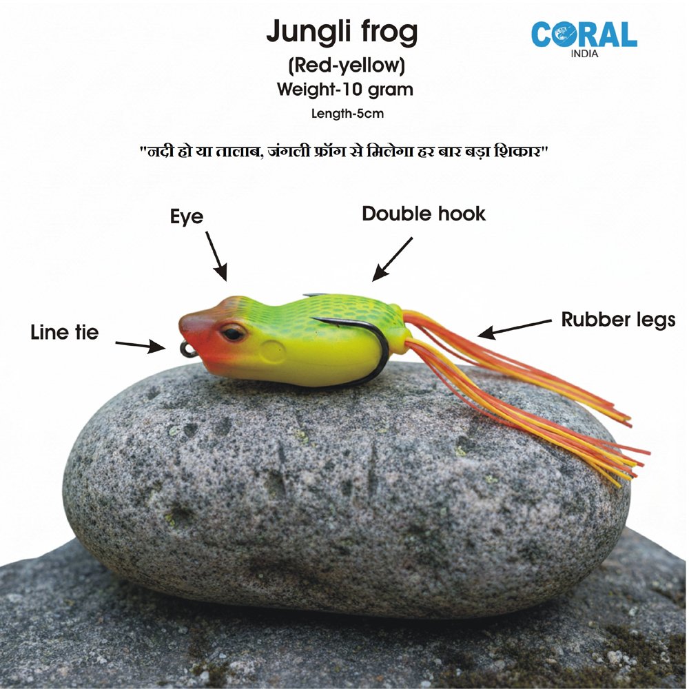 The Coral India Jungli Frog is the ultimate topwater bait for those who love the thrill of surface strikes. Its aerodynamic design and 10g weight allow for effortless casting into tight spots where big fish hide.
