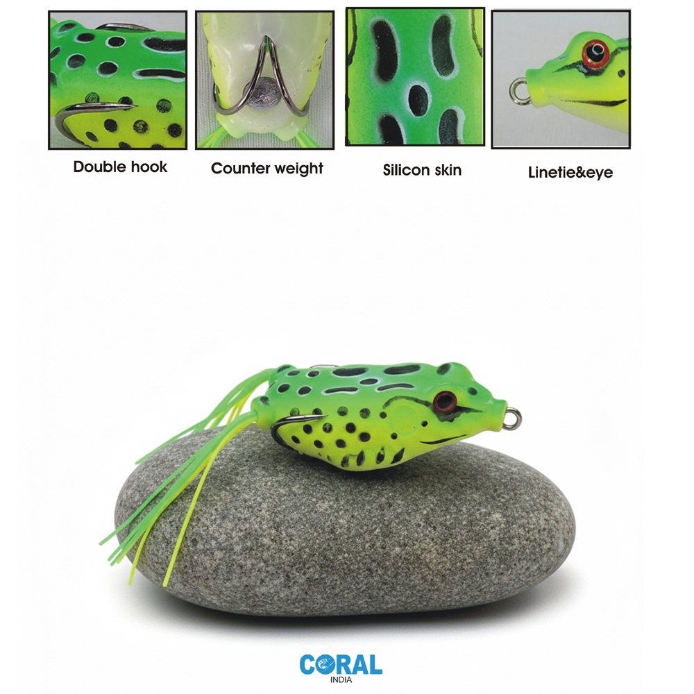 Level up your fishing game with the Coral India Rowdy-Frog! Specifically engineered for top-water action, this lure is a nightmare for predatory fish like Snakehead (Saul), Bass, and Pike.
